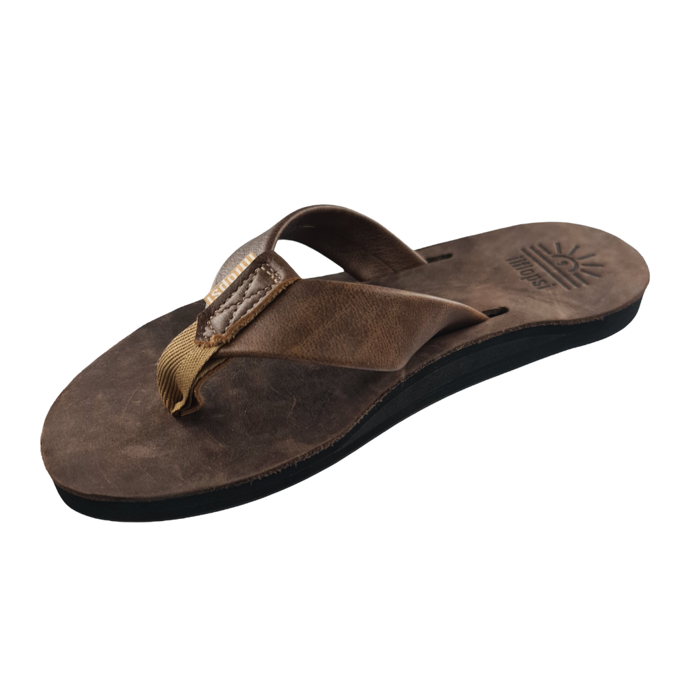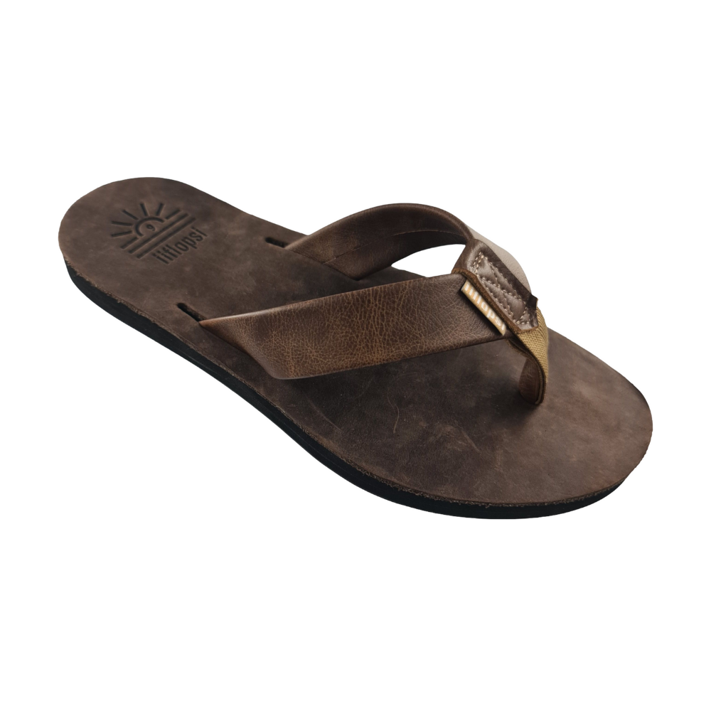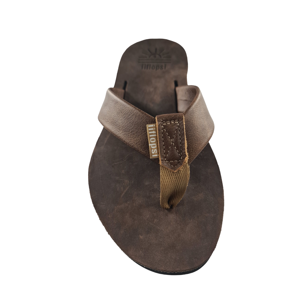 Our Buffalo together with our El Classico are our biggest sellers for men, in many cases we find customers buy a pair of each. If you are one for the outdoors and enjoy camping, fishing and adventure, by the nature of their colour, dirt does not show well on them. On the flip side, they can also be dressed up to your desire if you are after a casual/smart look. Our full grain leather upper, walnut straps and liners between your toes have been carefully selected and are super soft and supple.  Our flip flops are designed with a cushioned footbed that offers excellent arch support and comfort for all-day wear. Its flexible rubber outsole ensures reliable traction, making it perfect for a variety of surfaces, whether you're heading to the beach with friends or going for a braai with family. With its combination of comfort, support, and sleek design, our iiflopsi Buffaloes are a perfect go-to footwear for those who want both style, functionality and durability. All of our materials are sources locally and we handmake each and every pair in our factory in KZN.