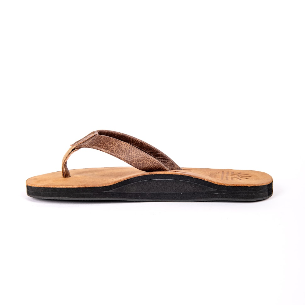 Our iiflopsi El Classico's was the first addition to the development of our range, a stylish and comfortable ladies flip flop for everyday wear. A classic tan, brown allows one to match this with pretty much anything. Probably our best all-rounder flip flop. Featuring carefully selected leather uppers, walnut leather straps and liners between your toes for additional comfort. We use a specifically developed and designed for purpose webbing that allows for stretch on the strap to fit like a glove and will stretch no further with a fold to meet leather process to keep a high-end finish. Our flip flops are designed with a cushioned footbed that offers excellent arch support and comfort for all-day wear. Our flexible rubber outsole ensures reliable traction, making it perfect for a variety of surfaces, whether you're heading to the beach with friends or going for a braai with your family. With its combination of comfort, support, and sleek design, our iiflopsi El Classico's are a perfect go-to footwear for those who want both style, functionality and durability. All of our materials are sourced locally, and we hand make our flip flops out of our small factory in KZN.
