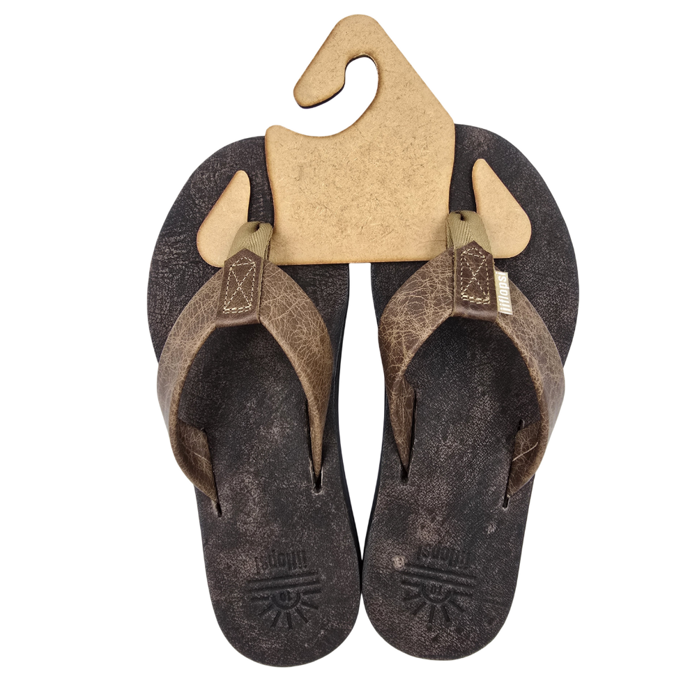 We wanted something truly South African, something that is truly unique, not only in the look, but in the feel too. After trialing a number of different types of exotic leathers, Genuine African Buffalo was the perfect fit! An extraordinary leather, very tough underneath and so very soft on the touch, perfect for a premium plakkie! We are very proud of our Buffalo Soldiers, and you will be too! These flip flops are designed with a cushioned footbed that offers excellent arch support and comfort for all-day wear. Its flexible rubber outsole ensures reliable traction, making it perfect for a variety of surfaces, whether you're heading to the beach with friends or going for a braai with family. With its combination of comfort, support, and sleek design, our iiflopsi Buffalo Soldiers are a perfect go-to footwear for those who want both style, functionality and durability. All of our materials are sources locally and we handmake each and every pair in our factory in KZN.