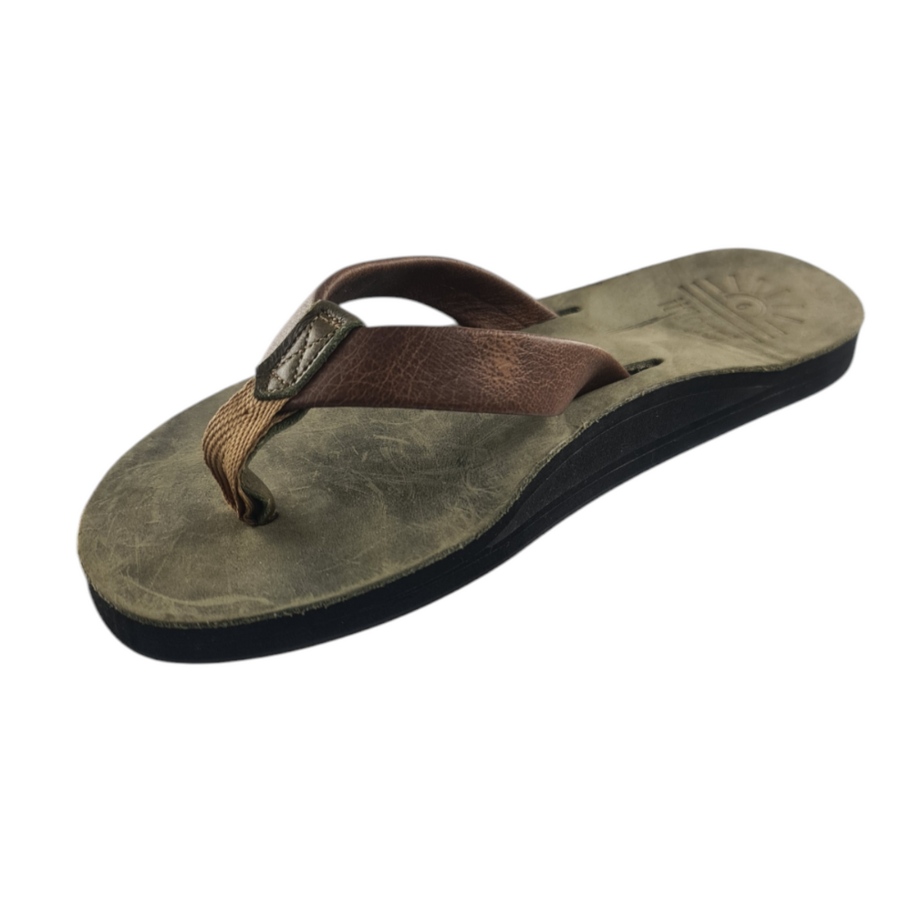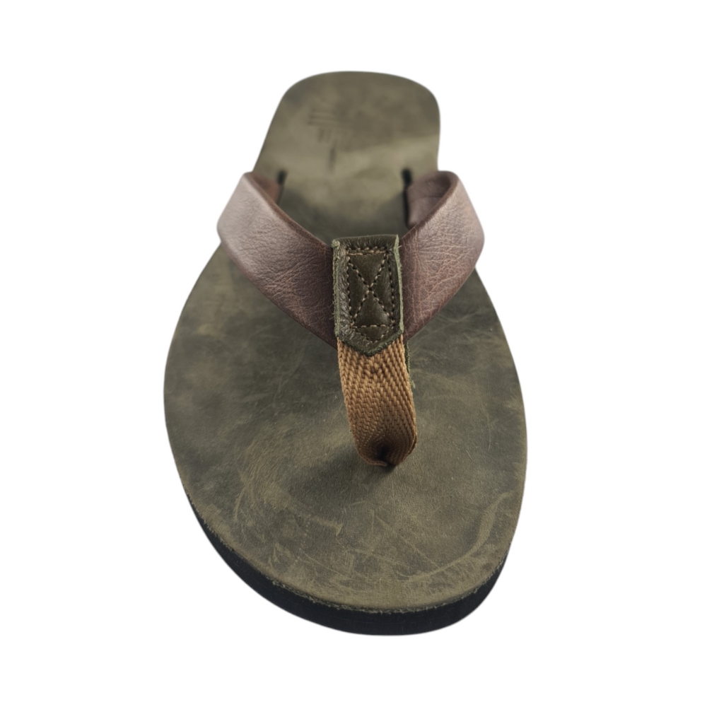 All of our sandals are handmade locally with luxury full grain leather straps and uppers with a polyester toe strap. The mid sole is made of memory foam specially designed to take on the shape of your foot. Over time the sandal will become more and more comfortable. The sole is made of rubber for increased longevity. The best and easiest way to clean your sandals is with luke warm soapy water and a sponge. Do not use chemicals as this will affect the leather and may cause delamination of the layers.